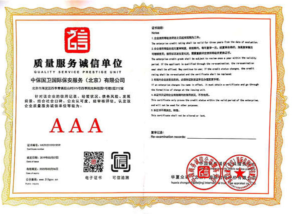 中保國衛(wèi)國際保安服務(北京)有限公司,屬中保國衛(wèi)集團旗下子公司。能全方位的為大型客戶提供優(yōu)質的安保、押運服務,是集人防和技防于一體的新型正規(guī)化綜合安保押運服務企業(yè),提供人防、物防、技防、聯網報*、非武裝押運等安防相關的一站式服務。 公司在國內多省設立有分公司及分支機構,著重提升安全押運、智能技術押運及安全技術防范相關的服務,業(yè)務范圍覆蓋全國一、二線城市、港澳地區以及海外地區。安保方面主要為政府機構、金融機構、企事業(yè)單位、醫(yī)療衛(wèi)生、高等院校、工業(yè)園區、大型商場、高檔住宅、智能商務樓、大型活動提供門衛(wèi)、守護、巡邏、押運(非武裝)、安全檢查、保安特勤、私人護衛(wèi)、消防中控、安全技術防范、遠洋護航等全方位服務,同時面向國際市場,為中資企業(yè)在“一帶一路”沿線國家投資提供境外安保服務。 >> 更多內容 |